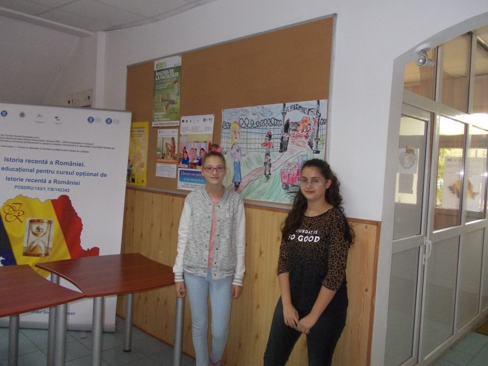 Eight grade students, participants in a Holocaust program at schools throughout Ilfov County, pose with their posters commemorating Holocaust victims as part of the Memory of the Holocaust national competition.