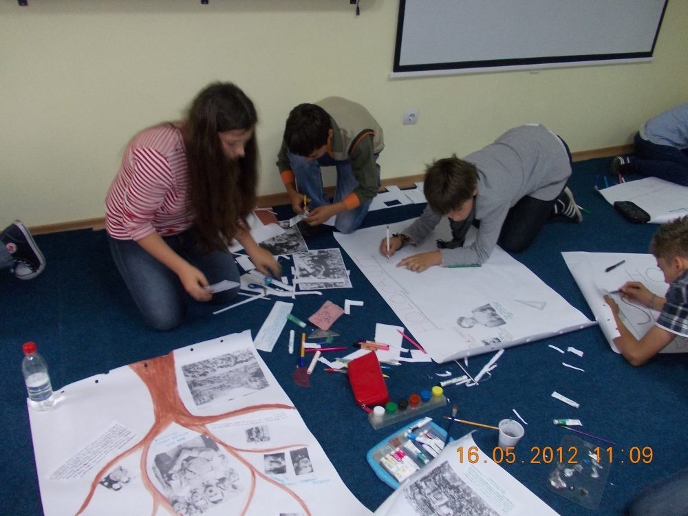 Middle school students work on thematic posters about the Holocaust in Romania as part of a Memory of the Holocaust national competition at the Ilfov Teacher Training Institute.